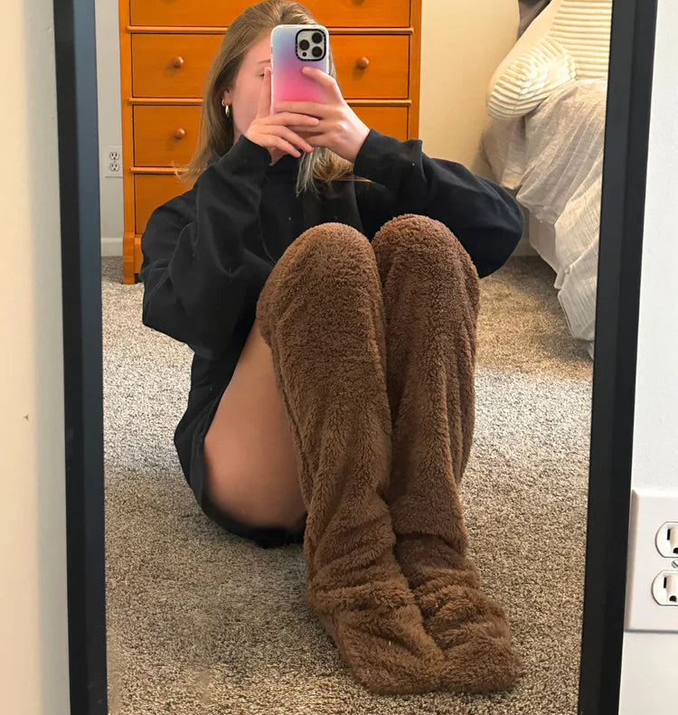Feel the luxurious, cloud-like softness of SnuggleSockz with every step. Designed for ultimate comfort, their plush fabric gently hugs your feet and legs, making every moment of lounging feel extra cozy.